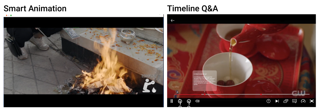 Two of my ideas were 1) to show information by mouse hovering in a scene when people hover the part they wanted to know, and 2) to be able to check information on the Netflix app on mobile while watching video content on TV or laptop at the same time. Moxue's idea was 3) to click the button on the timeline to check the information ,4) and use simple animation. I thought that her Q & A idea(3) was very similar to mine(1), so I asked to merge it, but she wanted to listen to people's thoughts individually, so we tested 4 ideas.